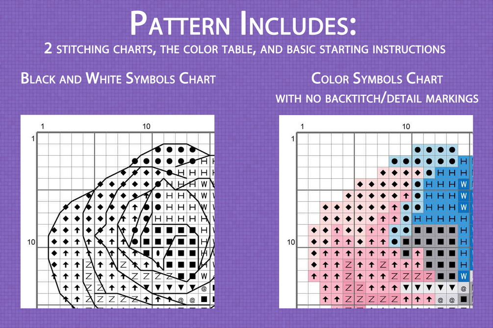 1 Digital PDF with cross stitch charts and a color table